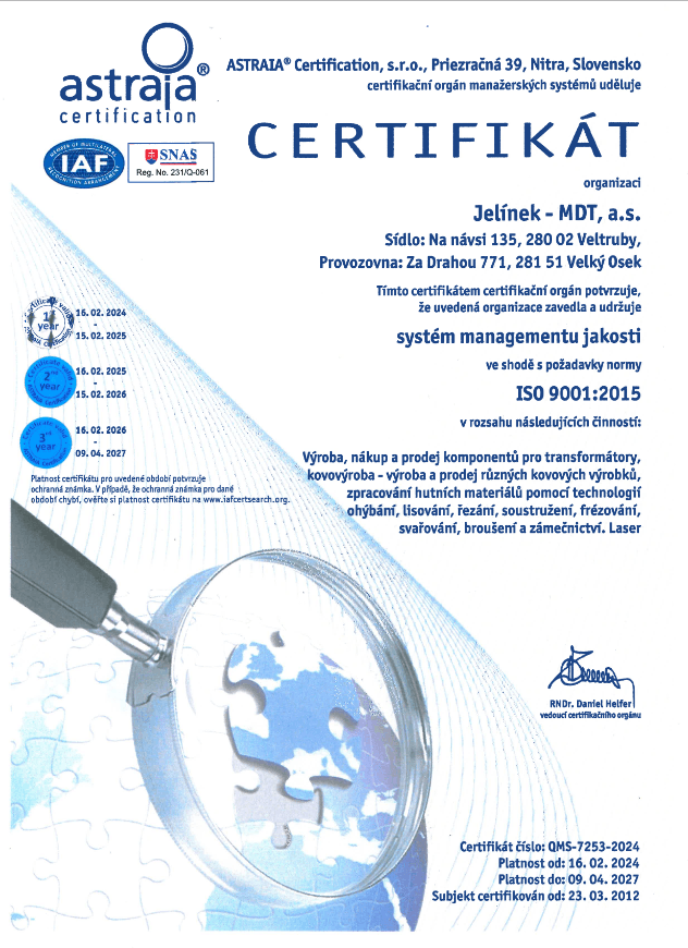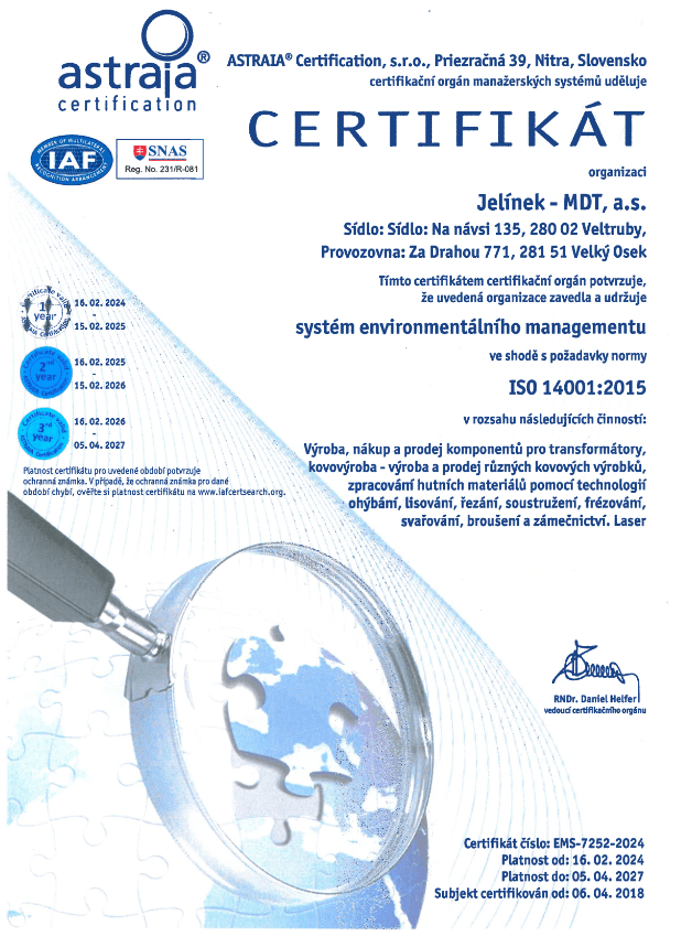We understand that only top-quality products can succeed in the market. That’s why we successfully passed a certification audit in accordance with ČSN EN ISO 9001 in 2012. In 2018, we obtained further company certification to ČSN EN ISO 14001. Our commitment to improving our services doesn’t end there.
